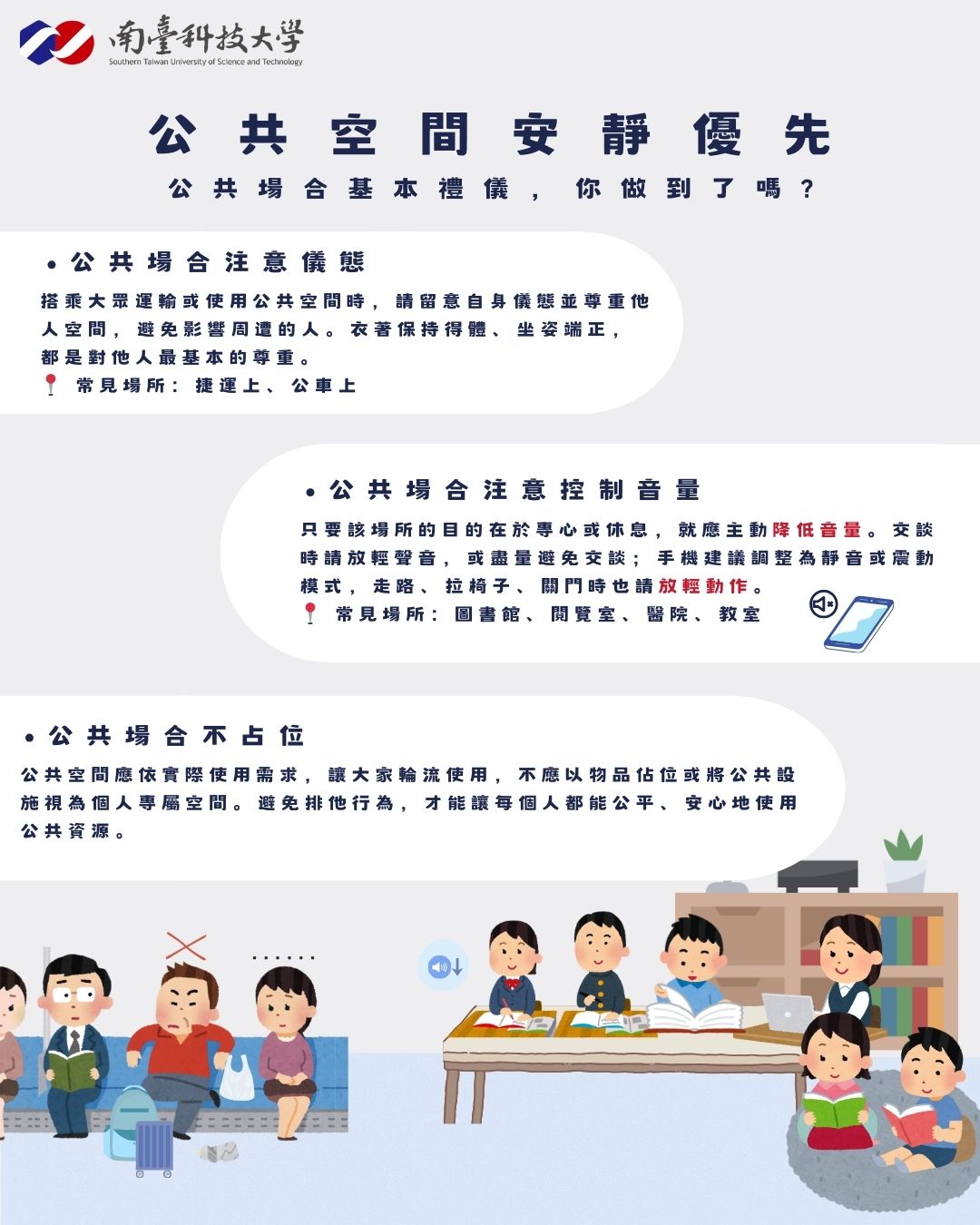 搭乘大眾運輸或使用公共空間時,請留意自身儀態並尊重他人空間,避免影響周遭的人。衣著保持得體、坐姿端正,都是對他人最基本的尊重。