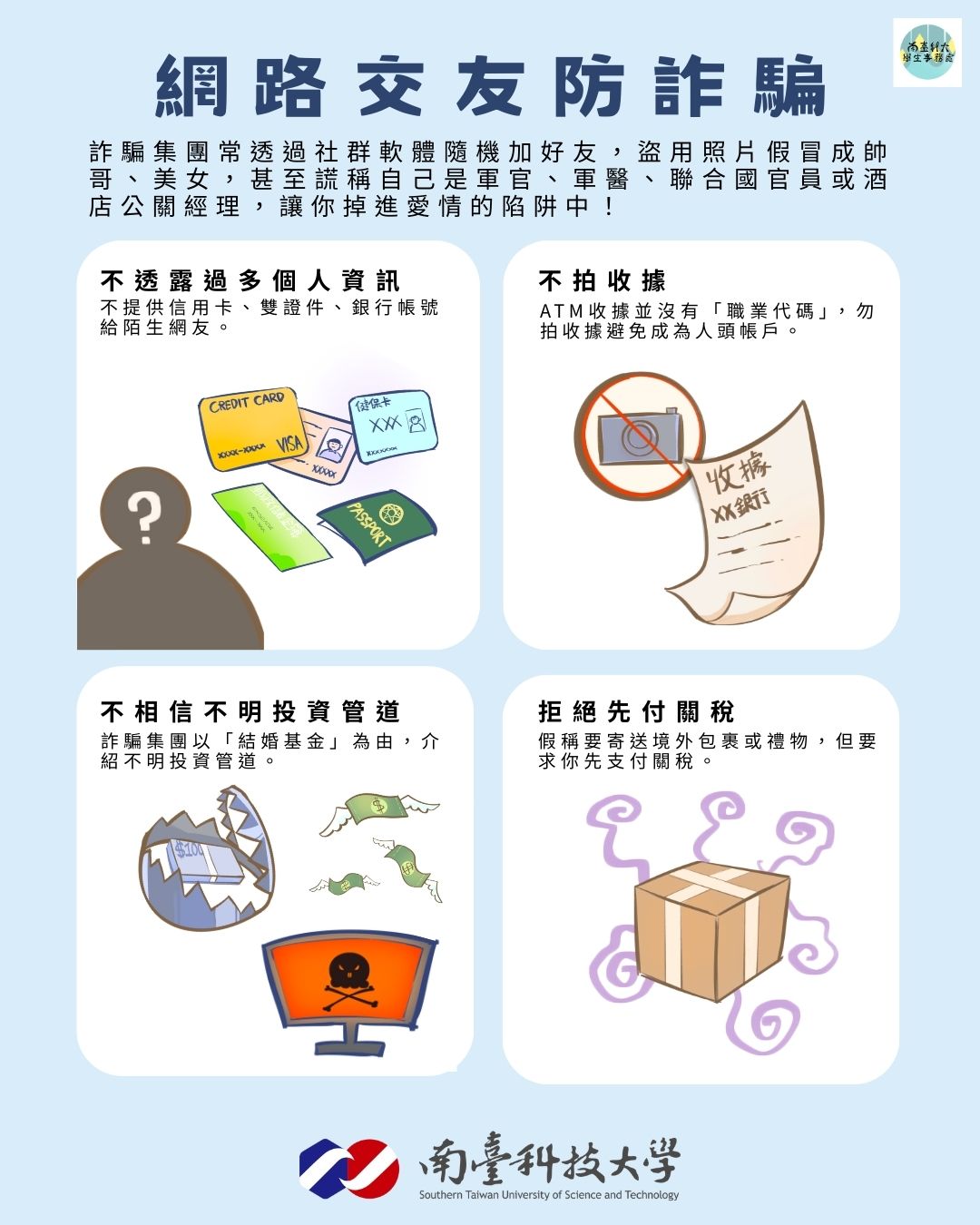 詐騙集團常透過社群網站或交友軟體隨機加好友,並以偷來的照片假冒成帥哥、美女,甚至謊稱自己是軍官、軍醫、聯合國官員或酒店公關經理,讓你掉進愛情的陷阱中!