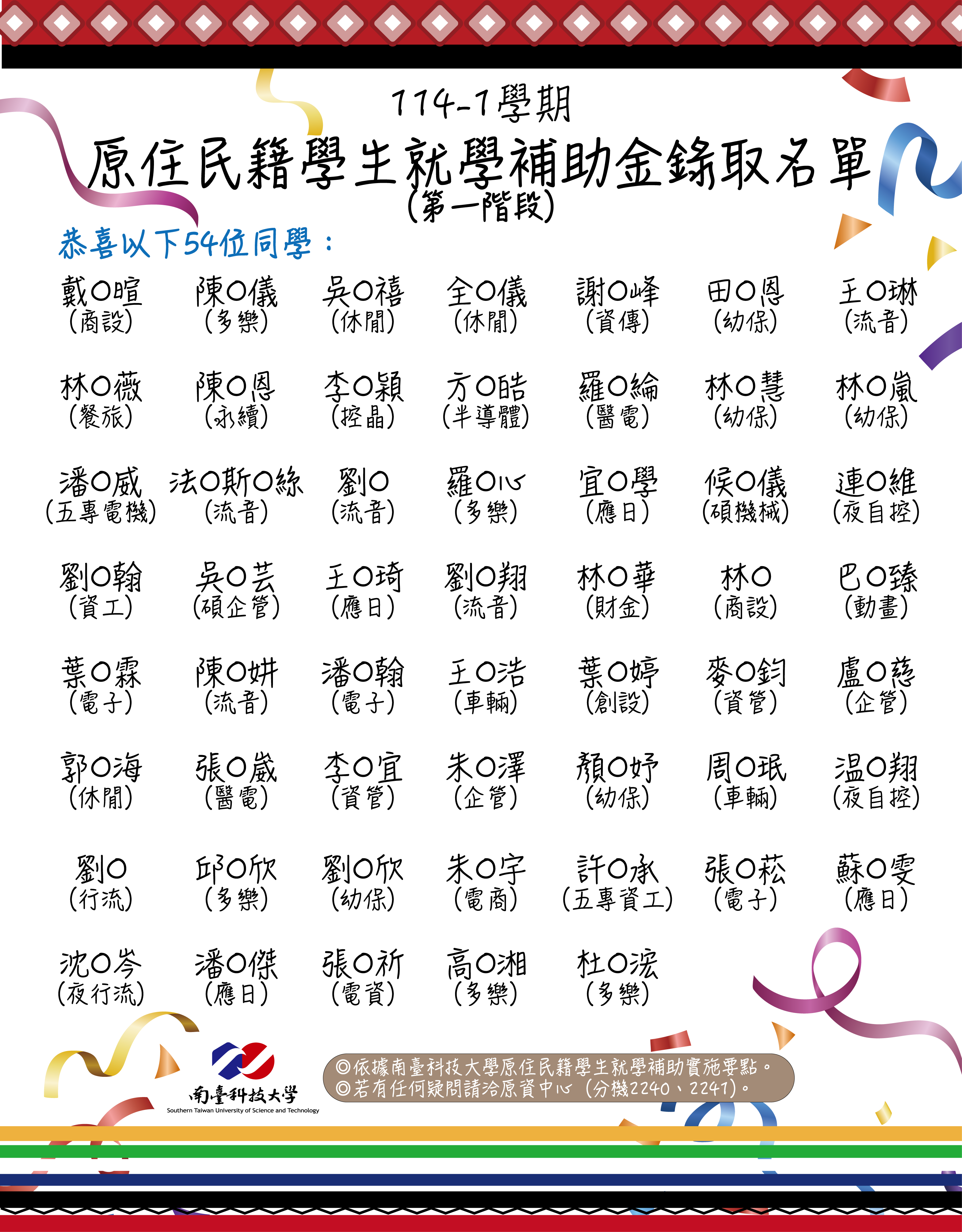 恭喜第一階段原住民籍學生就學補助金錄取的同學們!
