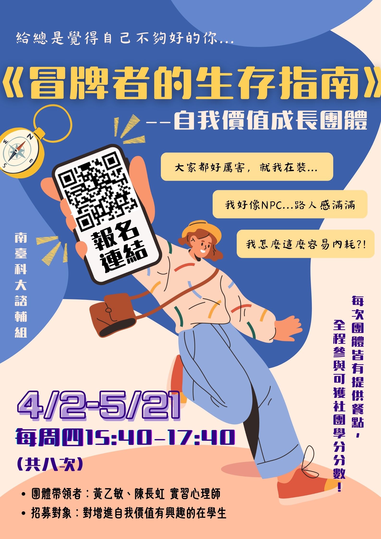 請密切注意諮輔組網頁最新消息、南臺Soul麻吉諮輔粉絲頁、諮輔組IG喲!